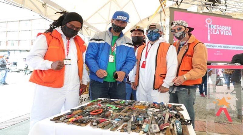 La estrategia contempla dos rutas de desarme, la primera, consiste en que a través de la entrega voluntaria las personas cambien comportamientos y creencias culturales relacionadas con que al portar un arma aumenta su protección, haciéndoles más fuertes o permitiéndoles llegar a resolver problemas de convivencia. En cada Alcaldía Local habrá una urna donde la ciudadanía podrá acercarse para entregar armas blancas de manera voluntaria y la segunda ruta será mediante el aumento de requisas por parte de la Policía. Para enero del 2021 con la ayuda de 500 nuevos detectores de metales se desarrollarán requisas electrónicas más eficientes y que permitirán mantener el distanciamiento personal