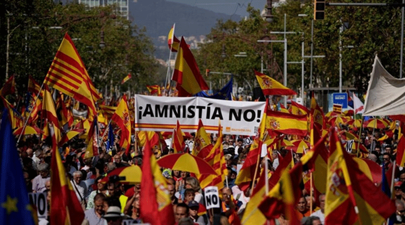 Aproximadamente cien mil españoles salieron a las calles para sentar su voz de protesta contra la amnistía que entre otros políticos favorecería al líder catalán y expresidente de la Generalitat, Carles Puigdemont, quien hace cinco años tuvo que salir de España tras ser decretada una orden de captura en su contra por el Tribunal Supremo.